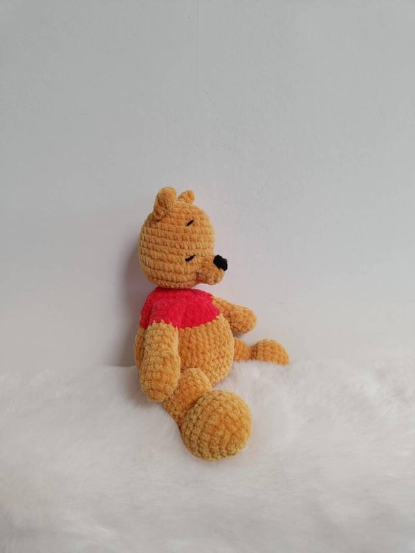 Schattig nostalgisch beertje gehaakt in zacht velvetgaren.