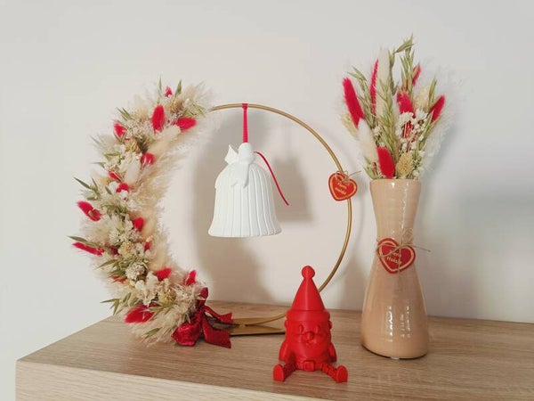 Leuk hoog vaasje met droogbloemetjes in kleuren rood, groen en crème.