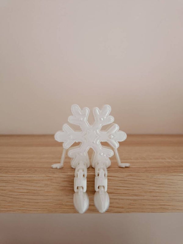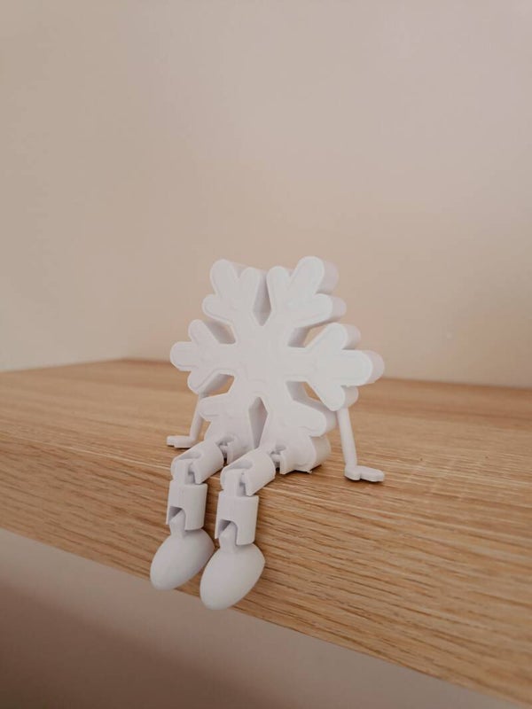 Zittende sneeuwvlok met handjes en beweegbare beentjes.