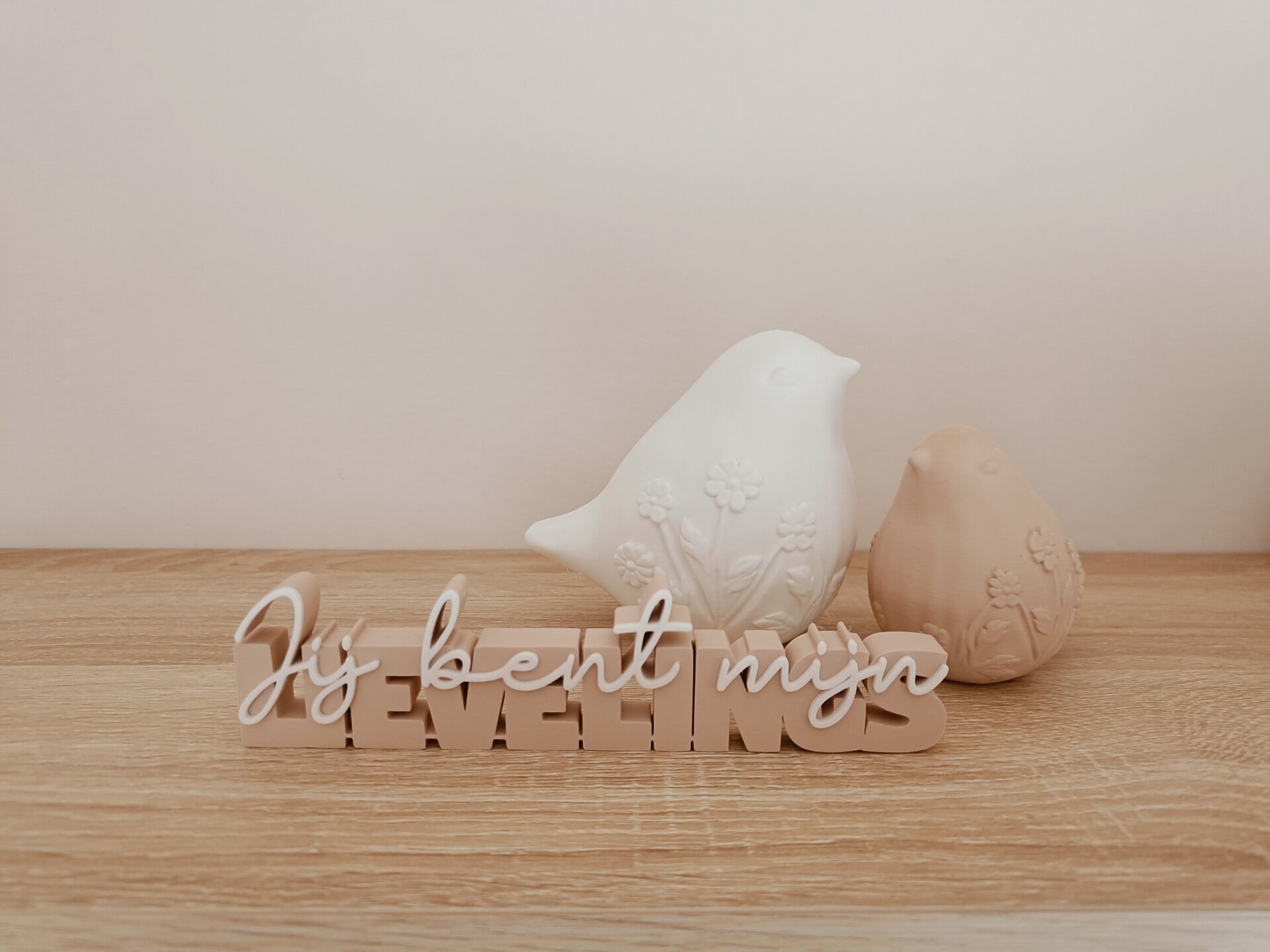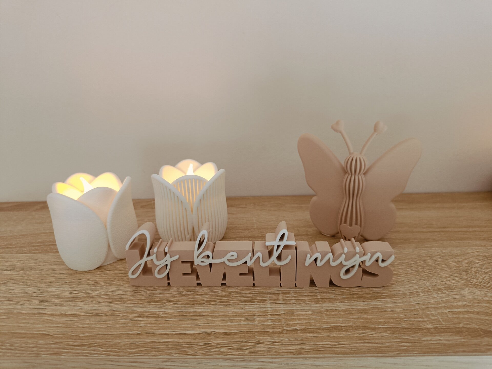 3D Wordpop 'jij bent mijn lievelings' met hartjes op het woord mama.
