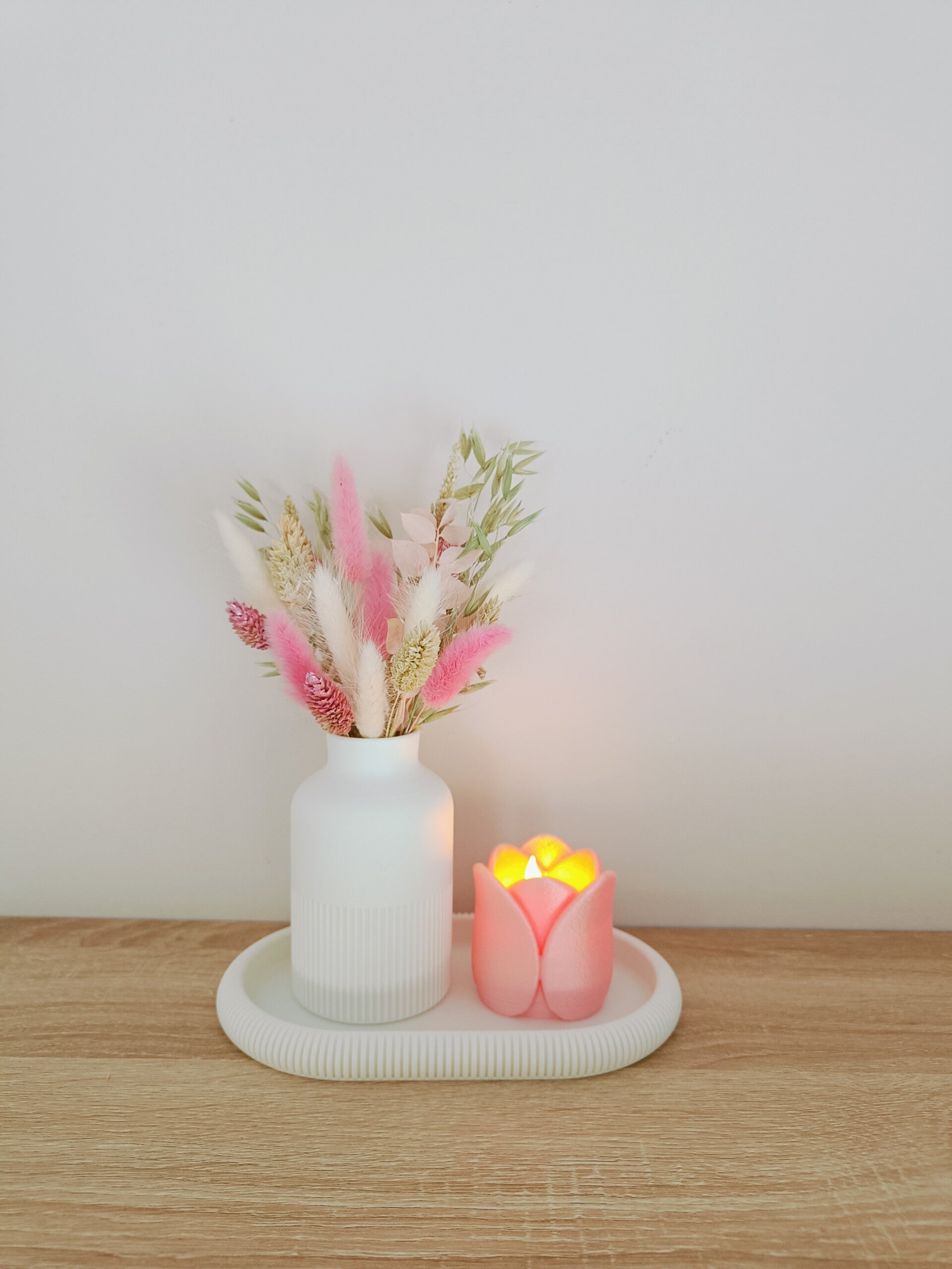 Tulp en schaaltje apart verkrijgbaar. De tulp is in de kleur Silk rose
